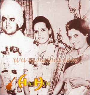 | सोनिया और राजीव का विवाह साथ में राजीव गांधी की माँ और भारत की पूर्व प्रधानमंत्री इंदिरा गांधी |