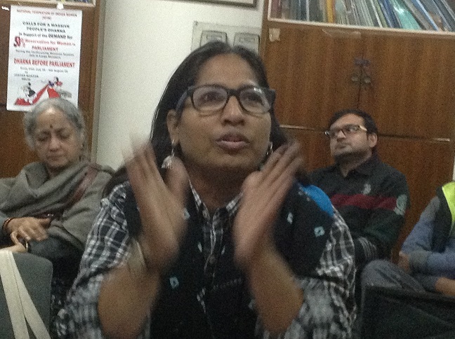 12 दिसंबर को एन एफ आई डवल्यू और स्त्रीकाल के संयुक्त तत्वावधान में ‘ महिला आरक्षण : कहाँ हैं रूकावटे’ विषय पर एक सार्थक राउंड टेबल, अंसल भवन (कस्तूरबा मार्ग ) स्थित एन एफ आई डवल्यू के कार्यालय में हुआ . बातचीत में विभिन्न महिला संगठनों के कार्यकर्ताओं , सामाजिक चिंतकों , क़ानूनविदों , पत्रकारों , आदि भाग लिया. एन एफ आई डवल्यू, आयडवा, राष्ट्रीय दलित महिला आन्दोँलंन , आल इंडिया वीमेन कांफ्रेंस, भारतीय महिला मोर्चा , जे. डवल्यू .पी , ए आई एस एफ, सत्यशोधक महिला समाज, सम्बुद्ध महिला संगठन, सी डवल्यू . एस. डी, दलित लेखक संघ, सहित अन्य संगठनों के प्रतिनिधि, दिल्ली विश्वविद्यालय और जे एन यू के शोधार्थी तथा अन्य बुद्धिजीवी शामिल हुए.