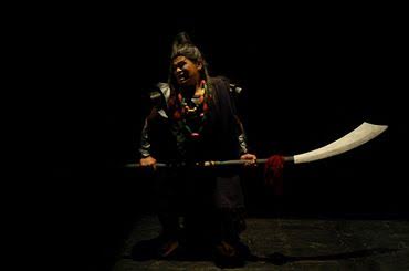 रतन थियाम का यह नाटक किसी एक बिंदु या किसी एक चरित्र या किसी एक संवाद से शुरू नहीं होता बल्कि यह अपनी परिधि में पूरे उस माहौल को समाहित और व्याख्यायित करता हुआ चलता है जो किसी काले घने जंगल की जंगली पुकारों से परिपूर्ण है. वस्तुतः इस नाटक का मूल स्वर ही जीवंत वनस्पतियों की हरी-नीली रोशनी एवं विचित्र ध्वनियों का संगम है, जो मैकबेथ के चरित्र को चुड़ैलों-सा जामा पहनाती है. यहाँ चुड़ैलें सिर्फ़ चुड़ैलें नहीं हैं वे वैश्विक स्तर पर हमारे उस देश-काल का प्रतिनिधित्व करती हैं, जहाँ जीवन पर संकट है, हमारी वन-सम्पदा पर संकट है, हमारी प्रजातियों पर संकट है और यह संकट दिनोंदिन गहराता जा रहा है. चुड़ैलों की देह पर गिरती-उठती हरी-नीली रोशनियों और उनकी विचित्र और हृदय-विदारक ध्वनियों से नाटक की शुरुआत होती है जो प्रत्यक्षतः कहानी के कथ्य के हिसाब से तो मैकबेथ और उसके साथी बैंको के लिए शुभ सूचनादायी है पर अप्रत्यक्ष रूप से हमारी पारिस्थितिकी पर मंडरा रहे खतरे को भी इंगित करता है. कुछ भाववाचक संज्ञाएँ जैसे महत्वाकांक्षा, लालच, सत्ता की भूख एवं उससे उपजनेवाला खून-खराबा इस पूरे प्रोडक्शन के साथ-साथ चलता रहता है. जहाँ तक परिधान, ज्वेलरी एवं वेशभूषा का प्रश्न है तो ऐसा प्रतीत होता है कि यह कई सारे जनजातीय समाजों का मिश्रण-सम्मिश्रण है जो वास्तव में इस नाटक की आदिम पहचान और स्वरूप को चिन्हित और व्याख्यायित करता है.