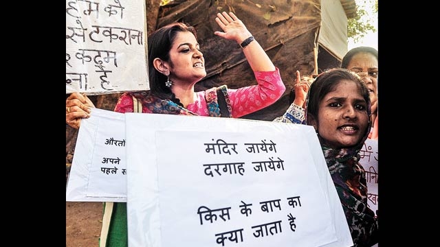 मुद्दे और भी हैं कि जिस प्रदेश में यह ‘क्रांति‘ किसी भूमाता ब्रिगेड( जो मंदिर प्रवेश करते-करते ही तीन टुकड़ों में बंट गयी, इसके तीन कोर सदस्यों ने अपने प्रेजिडेंट तृप्ति देसाई के ‘ऑटोक्रॅटिक’ व्यवहार के विरोध में भूमाता स्वाभिमानी संगठन की घोषणा कर दी) द्वारा शुरू की गयी उसका बैकग्राउंड क्या था? क्या इसका प्रत्यक्ष सम्बन्ध रेशनलिस्ट दाभोलकर द्वारा सं 2000 ई में शनि मंदिर में महिलाओं के प्रवेश से जुड़ा था, क्या हमारा आधुनिकता से जन्मा ‘रैशनल’ महिलाओं के लिए यही रोडमैप तैयार किये बैठा है, जिसमें राज्य को इस ‘आंदोलन’ को ट्वीट द्वारा समर्थन (मुख्यमंत्री फडणवीस की समर्थन ट्वीट) और कानून और व्यवस्था के तहत उन्हीं महिलाओं को पुलिस द्वारा जबरन रोके जाने के मायाजाल में फंसा रहेगा? और भी रोचक सन्दर्भ हैं इसके, कमोबेश इसी समय एक शक्तिशाली दलित महिला नेता जब मंदिर प्रवेश को लेकर भीषण मानवाधिकार हनन का रोना संसद में रो रही थीं तो दूसरी दलित/पिछड़ा महिला नेता जो उसी प्रदेश से सम्बन्ध रखतीं हैं जहाँ यह वितंडा खड़ा किया जा रहा था, खुलेआम परंपरा को बचाने की आपाधापी में महिला मंदिर प्रवेश के खिलाफत में उतर आयीं, यहाँ महिला, मंदिर और सत्ता का एक ऐसा कॉकटेल बना जिसमें अधिकार, आस्था और सशक्तिकरण अपने वैलिडिटी की नयी परंपरा चुनते नज़र आये जो अब लोक नहीं राज्य तय करेगा।