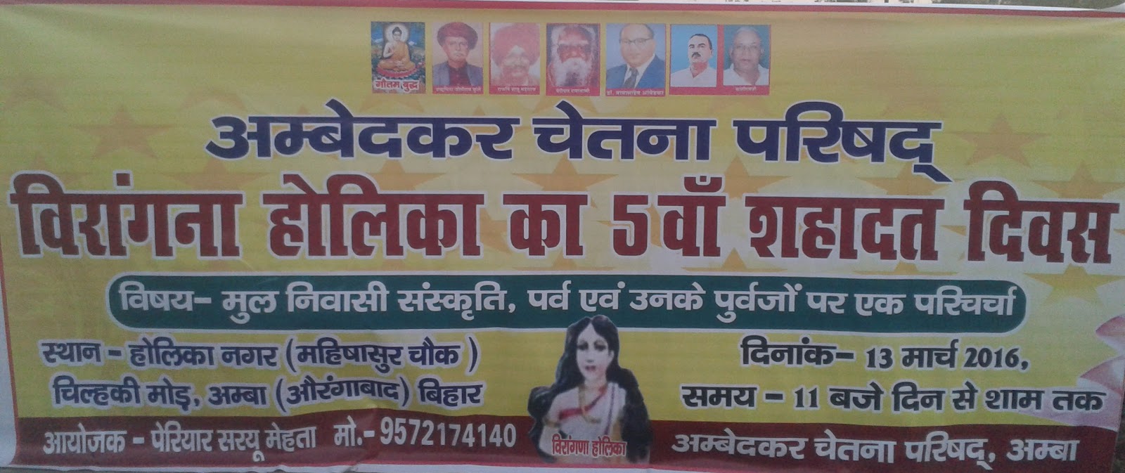 ‘वीरांगना होलिका’ की शाहदत मनाने वाले लोगों ने न सिर्फ होलिका की पेंटिंग के जरिये एक वास्तविक प्रतीक रचा है , बल्कि अपने पैम्पलेट , बैनरों और संबोधनों में वे सम्राट महिषासुर, सम्राट रावण , महात्मा बुद्ध, चन्द्रगुप्त मौर्य , सम्राट अशोक, महात्मा कबीर, संत रविदास, बिरसा मुंडा,  महात्मा फुले, सावित्रीबाई फुले, डा. आम्बेडकर, पेरियार, संत गाडगे बाबा, जगदेव प्रसाद, कांशीराम सरीखे बहुजन नायकों के साथ अपनी बहुजन परम्परा रचते हैं.