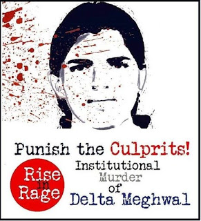राजस्थान में बाड़मेर जिले के त्रिमोही गांव में जन्मी डेल्टा मेघवाल बचपन से ही बहुत प्रतिभाशाली थी. 2014 में उसने जयनारायण व्यास विश्वविद्यालय की ओर से आयोजित बेसिक स्कूल टीचर कोर्स की प्रवेश परीक्षा पास कर नोखा के जैन आदर्श कन्या शिक्षक-प्रशिक्षण महाविद्यालय में दाखिला लिया था. लेकिन इस महाविद्यालय ने उसके सपनों को पंख देने की बजाय उसकी जान ले ली.  डेल्टा की हत्या से जुड़े सवाल तो कई हैं, जो हमारे सामने मुंह चिढ़ाते खड़े हैं. आखिर उसे होस्टल की वार्डन ने पीटी इंस्ट्रक्टर के रूम में सफाई करने के लिए क्यों भेजा? वह छात्रा थी, सफाईकर्मी तो नहीं थी.  आरोप है कि वहीं उसके साथ रेप हुआ, क्योंकि उसने खुद अपने पिता को फोन कर हालात असहनीय होने की बात कही थी. कल होकर उसकी लाश एक टैंक में मिली थी। इसके बाद उसे अस्पताल तक ले जाने के लिए पुलिस ने एक ट्रैक्टर का इस्तेमाल क्यों किया? आरोप है कि जब लाश पर चोट के निशान थे, तब भी इसे शुरू में पुलिस ने आत्महत्या का मामला ही क्यों बनाए रखने का प्रयास किया. इन सब तथ्यों से एक सुनियोजित षड्यंत्र का संदेह होता है. एक प्रतिष्ठित शैक्षिक संस्थान में दलित लड़की के साथ इतनी क्रूरता कैसे की गई?