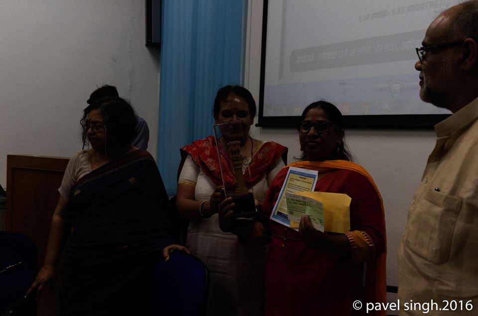 सावित्रीबाई फुले वैचारिकी सम्मान, 2016 के साथ अनिता भारती, साथ में लेखिका नूर जहीर, अर्चना वर्मा, लेखक और हंस के सम्पादक संजय सहाय