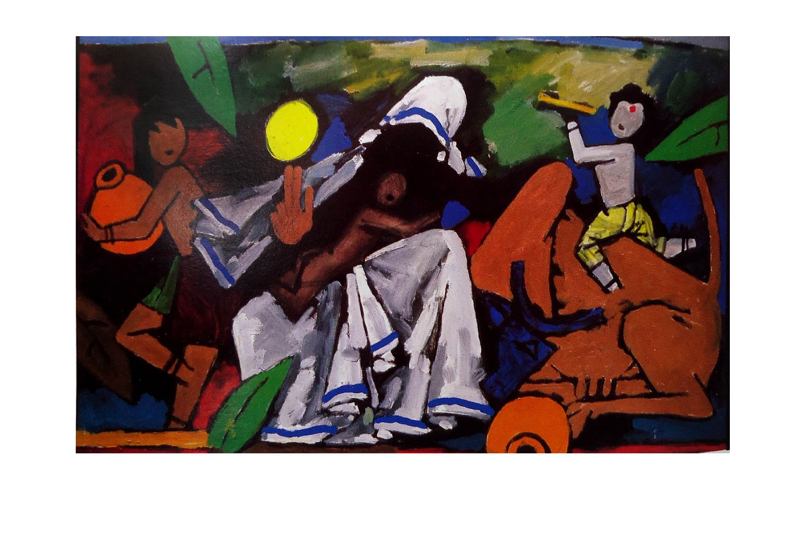 यह दुनिया की एक मशहूर देवी स्वरूप मदर टेरेसा थी, जिनकी पहचान चेहरा नहीं उनकी बेपनाह मोहब्बत है, उन बच्चों के लिए, जिन से माँ की मोहब्बत छीन ली गई हो. हुसेन ने सन 1988 में तैल रगों द्वारा एक ऐसा सुंदर चित्र रचा, जो आज राष्ट्रीय आधुनिक कला संग्रहालय में संग्रहित है. इस संयोजनात्मक चित्र में हुसेन ने एक ऐसे कुटुँब का चित्राँकन किया है, जो मूलतः गरीब एवं दुखीः परिवार दिखाई पडता है-कुटुँब के मूल बीमार व्यक्ति को मदर टेरेसा अपनी गोदी में सुलाए सहला रही हैं, मानो उसका आत्मविश्वास बढ़ा रही हों, व्यक्ति के गुप्ताँगों से खिसकता नीले रंग का कपडा, दर्द से ढका निःशक्त शरीर, अर्धांगिणी बाई और उसका बच्चा एक महिला की आँचल से लिपटे खेल रहा है.