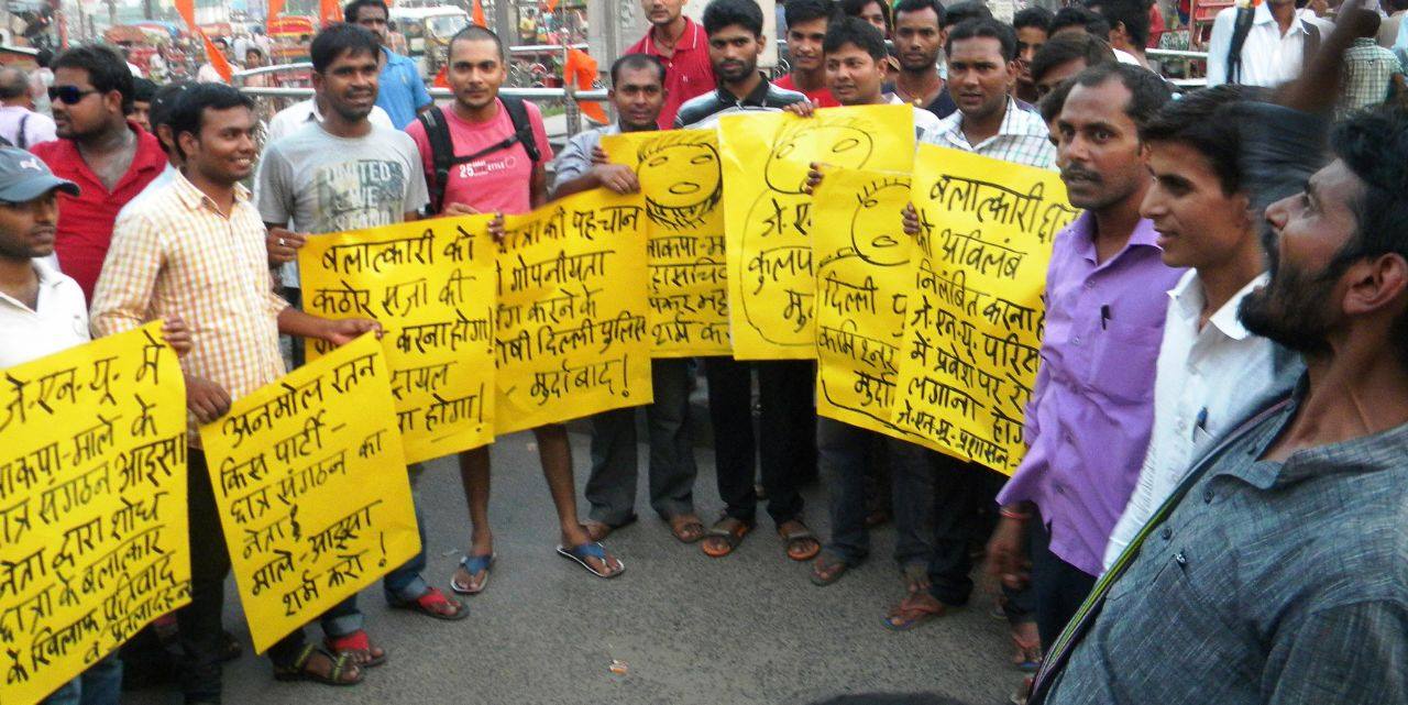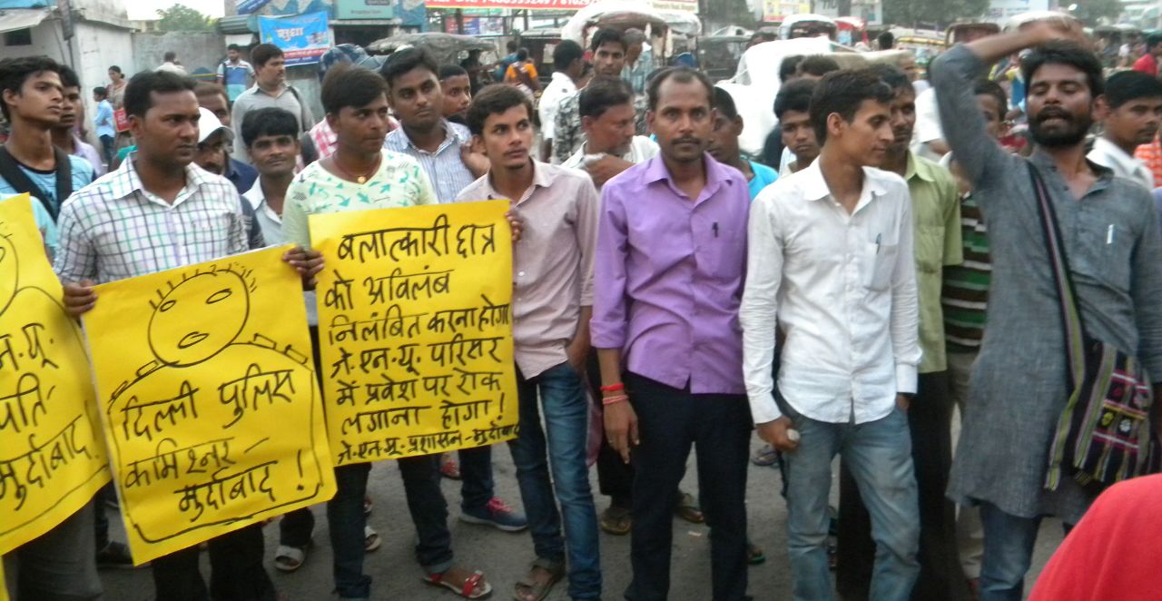जबकि छात्र नेता दीपक कुमार एवं राजेश यादव ने कहा कि जिस तरह दिल्ली पुलिस ने पीड़िता की पहचान सार्वजनिक कर आपराधिक काम किया है, ऐसे पुलिस पदाधिकारी को अविलंब बर्खास्त करते हुए उनपर मुकदमा दर्ज कर स्पीडी ट्रायल चलाकर सजा की गारंटी की जाय. दोनों छात्र नेताओं ने कहा कि जिस प्रकार दिल्ली पुलिस आरोपी की गिरफ्तारी में सुस्ती बारात रही थी, ठीक वैसे ही जेएनयू छात्र संघ, आइसा और भाकपा-माले भी सड़क पर उतारने में सुस्त दिखे. इस मामले में दिल्ली पुलिस, जेएनयू विवि प्रशासन के साथ ही आइसा और भाकपा-माले की सक्रियता व संवेदनशीलता सवालों के घेरे में है. ऐसी मानसिकता के साथ ये फ़ासिज़्म से लड़ने के बजाय उसे मजबूत ही करेंगे.  इस मौके पर अंजनी, डॉ. अजीत कुमार सोनू, विकास, राजेश, विकास, जितेंद्र, कृष्ण बिहारी गर्ग, प्रियतम, सचिन, इमरान, पुष्पेश, असीम, अभिषेक सहित दर्जनों छात्र मौजूद थे.