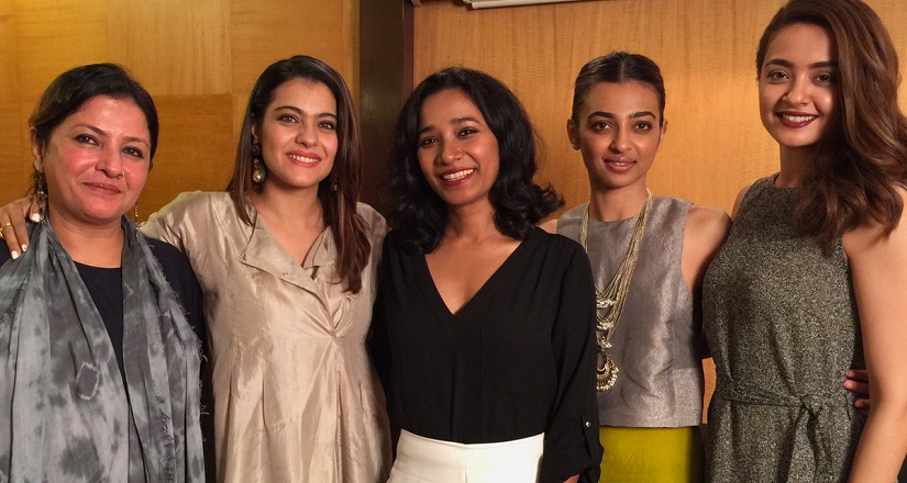 | निदेशक लीना यादव और अभिनेत्री काजोल के साथ पार्च्ड फिल्म के कलाकार |