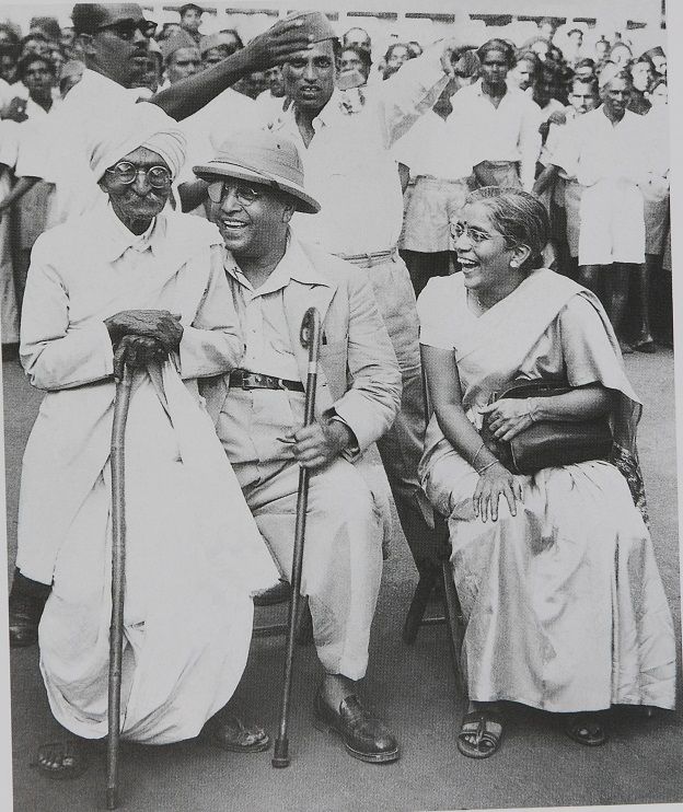 रायबहादुर सीके बोले के बैठने की जगह न होने के कारण अम्बेडकर ने उन्हें अपनी गोद में बिठा लिया. उनके साथ में माई अम्बेडकर.