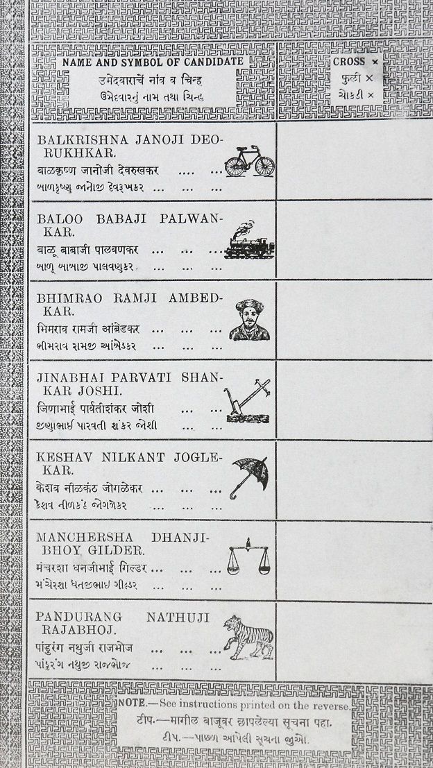 स्वतंत्र मज़दूर पार्टी की ओर से 17 फरवरी 1937 को मध्य मुम्बई निर्वाचन क्षेत्र से चुनाव लड़ रहे अम्बेडकर का मत पत्र. उनका चुनाव चिह्न ‘आदमी’ था.