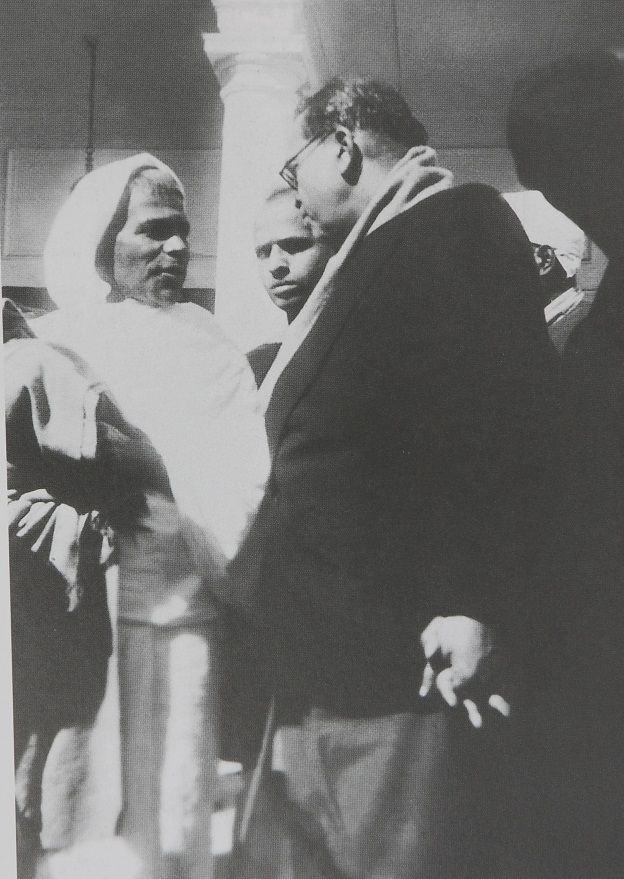 अम्बेडकर बिरला हाउस की तरफ दौड़ पड़े, वहाँ पर कांग्रेसी नेता शंकर राव देव से बातचीत करते हुए.