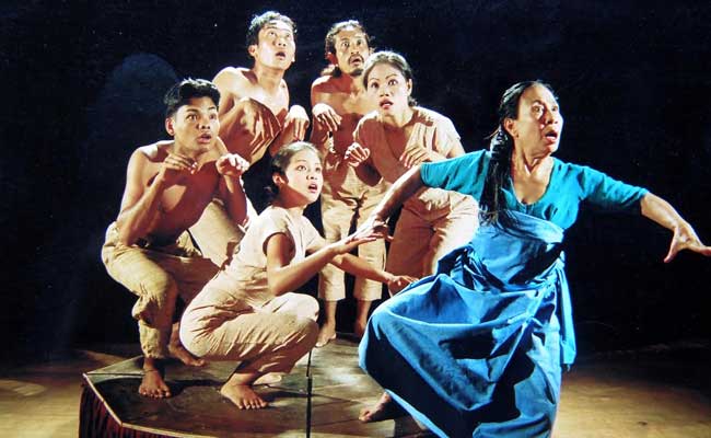 महोत्सव के दूसरे दिन रंगप्रेमी दर्शकों, अध्येताओं और शोधार्थियों ने मणिपुर की वरिष्ठ अभिनेत्री और मशहूर निर्देशक स्वर्गीय एच. कन्हाईलाल की जीवन संगिनी सावित्री हेस्नाम को ‘लिविंग लीजेंड’ के तहत सुना, जिसमें उन्होंने अपने जीवनानुभव लोगों से साझा किये. इन जीवनानुभवों में अपनी रंगयात्रा, एक अभिनेत्री के रूप में अपनी मेकिंग और अपने प्रियतम और पति कन्हाईलाल जी के साथ बिताई यादों को उन्होंने दर्शकों के साथ साझा किया. उसी शाम सावित्री जी को कन्हाईलाल निर्देशित नाटक ‘पेबेट’ में देखना एक सुखद अनुभव रहा. मंच पर सावित्री हेस्नाम जी को देखना खुद पर फ़ख्र करने जैसा है और रश्क करने जैसा है कि हमारी आने वाली पीढियां याद रखेंगी कि हमने माँ सावित्री को देखा है, गुरु माँ को देखा है. पेबेट की माँ की भूमिका निभा रही माँ सावित्री मंच पर कोई वृद्धा या वरिष्ठ नायिका नहीं लगती, बल्कि चिड़िया-सी फुदकती सोलह बरस की किशोरी या युवती लगती हैं. मंच पर कोई सेट नहीं, कोई ताम-झाम नहीं, कोई साज-सज्जा नहीं सिर्फ अपनी आवाज़, अपने सुरीले कंठ से निकलती विभिन्न प्रकार की ध्वनियों, अपने अभिनय और भाव-भंगिमाओं से वह ऐसा जादू उत्पन्न करती हैं कि मंच पर कोई और कलाकार दर्शकों को दिखता ही नहीं. दर्शक ठगे-से, मंत्रमुग्ध से सिर्फ़ उन्हीं को निहारते रह जाते हैं. एक और बात जो उनके कुशल अभिनेत्री होने का परिचायक है कि अपने रंग सहयात्री और जीवनसाथी कन्हाईलाल जी को खोने की वेदना से भरी होने के बावजूद उन्होंने अपने अभिनय पर अपनी वेदना, अपनी पीड़ा को भारी नहीं पड़ने दिया है. मंच पर उनका अभिनय ही उनकी वेदना पर भारी पड़ता है जबकि कल दिन में ही हुए अलायड इवेंट के ‘लिविंग लीजेंड’ कार्यक्रम के दौरान एक घंटे तो उन्होंने शोधार्थियों, रंगमंच के अध्येताओं और दर्शकों से अपनी भावनाओं पर काबू करते हुए बड़ी ही कुशलता से बातचीत की, लोगों से अपनी रंग और अभिनय यात्रा के महत्वपूर्ण अनुभवों को साझा किया, लेकिन अंत तक आते-आते उनकी आँखें कन्हाईलाल जी को याद करते हुए बरबस छलक पड़ी थीं.