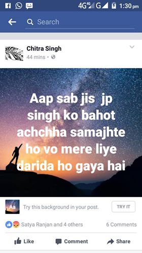 चित्रा सिंह की जेपी सिंह से दोस्ती भारतेंदु नाट्य अकादमी में हुई थी, प्रशिक्षण के दिनों में.  बाद में उन्होंने शादी कर ली थी. स्त्रीकाल द्वारा सम्पर्क करने पर उन्होंने बताया कि वे इंदिरापुरम थाने में बैठी हैं और रिपोर्ट दर्ज करवा रही हैं. जबकि जे पी सिंह ने फोन और मेसेज का जवाब नहीं दिया. चित्रा थिएटर  का एक समूह ‘रंगभूमि’ की संचालिका भी हैं.