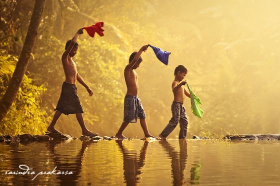 बड़का लड़का – अरे ओ द्वारका ओ लल्लू चलौ दौड़ौ बुआ आई है। द्वाराका, औ (मझिला) औ लल्लू (सबसे छोटा) दौड़ै। एक तो बुआके लपेटे दूसर जने गठरी मुठरी खोलै लागैं, गठरी से गुड़ लाई चना निकार के खाय चबाय लागै औ बुआ से बातैं छुअन लागीं।