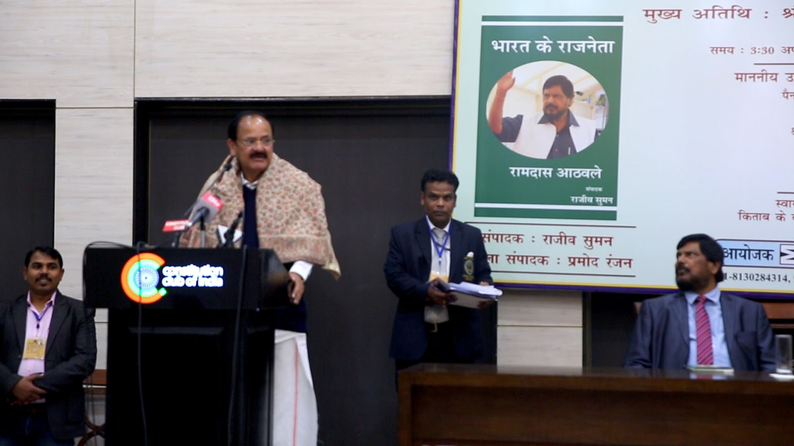 उपराष्ट्रपति वेंकैया नायडू ने को कहा कि महिलाओं को अवसर दीजिये और देखिये कि वे किस तरह खुद को साबित करती हैं. वे जहां भी चुनी गई हैं, जहाँ भी उन्हें आरक्षण मिला है उन सदनों में उन्होंने साबित किया है कि वे महत्वपूर्ण योगदान दे रही हैं. उन्हें उच्च सदनों में भी आरक्षण मिलना चाहिए। ये बातें नायडू ने 3 जनवरी को द मार्जिनलाइज्ड प्रकाशन द्वारा प्रकाशित भारत के राजनेता सीरीज की किताब ‘रामदास आठवले’ का स्पीकर हॉल, कांस्टीट्यूशन क्लब में विमोचन करते हुए कही. उन्होंने समाजिक न्याय मंत्री ‘रामदास आठवले’ की राजनीति को समाज में समता और शान्ति स्थापित करने वाला बताया। उन्होंने कहा कि इस सीरीज में यह दूसरी किताब है और अन्य राजनेताओं पर भी किताब आ रही है, यह महत्वपूर्ण है कि जनता तक राजनेताओं की बात जाये।