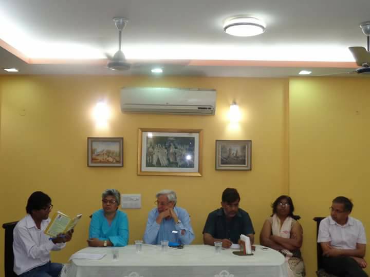| रजनीतिलक की आत्मकथा अपनी जमीं अपना आसमां के विमोचन अवसर पर बाएं से दाये, हेमलता माहिश्वर, प्रोफेसर अभय मौर्या, संजीव चंदन , रजनीतिलक, बजरंग बिहारी तिवारी |