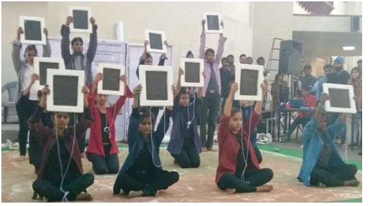 यह आर्ट परफ़ॉर्मेंस उस समय चरम पर होती है जब रिक्त स्थान पर दो छात्रायें आकर रंगीन मिट्टी को फैलाने लगती हैं। माहौल में कुछ धुल सा उड़ता है दर्शकों पर भी जाता है। परन्तु तुरंत ही अन्य कलाकार वहाँ आकर आपकी अंगुलियाँ व पैरों से कुछ रेखायें खिचने से दिखाई देने लगते हैं। यह दृश्य बहुत गंभीर प्रस्तुति देता है। इसी प्रकार एक बार तो रंगीन फर्श भी आ जाता है। पूरी परफ़ॉर्मेंस में फर्श भी तीन चार बार अपना रंग बदलता है। रंगत व टेक्स्चर को प्रदर्शित करते विद्यार्थी जमीन पर लेटकर फर्श को हाथों से अनियमित अन्तराल में छूते हैं व महसूस करते है तभी एक लड़की हाथों में कांच का गिलास, एक अन्य लड़की प्लास्टिक की बोतल व तीसरी लकड़ी को हाथों में लेकर उन्हें सहलाती हुई अन्तराल पर विचरण करती रहती है। मैंने रंगो व पोत को इस तरह से दृश्यमान होते देखा है। इस परफ़ॉर्मेंस की परिकल्पना मैंने जिस भी विचार से की हो परन्तु यह दर्शकों पर नवीन आयामों को उजागर करती अभिव्यक्त होती है। एक ऐसा सैद्धान्तिक विषय जो कक्षाओं में पढ़ाने का है अधिक से अधिक विषय से संबंधित चित्रों को स्लाइड या स्क्रीन पर पढ़ाया जा सकता है। ऐसे ही विषय को कक्षा से बाहर निकाल कर एक पर्फामेन्स द्वारा अभिव्यक्त करना वाकई एक नये विचार का आगाज है। एक विचार, एक कान्सेप्ट होते हुये भी गूढ़ अर्थों में कला शिक्षा के इर्द गिर्द के कई गंभीर मुद्दों को भी परोक्ष रूप में उकेरा गया है। कलात्मकता है। परन्तु माध्यम अलग है। अभिव्यक्ति है परन्तु न कोई रंग, न रेखा, न कैनवास, फिर भी कलाकारों द्वारा अपने शारीरिक मूवमेंट्स तथा हलचलों द्वारा विचार का एक अमूर्त संप्रेषण किया गया।