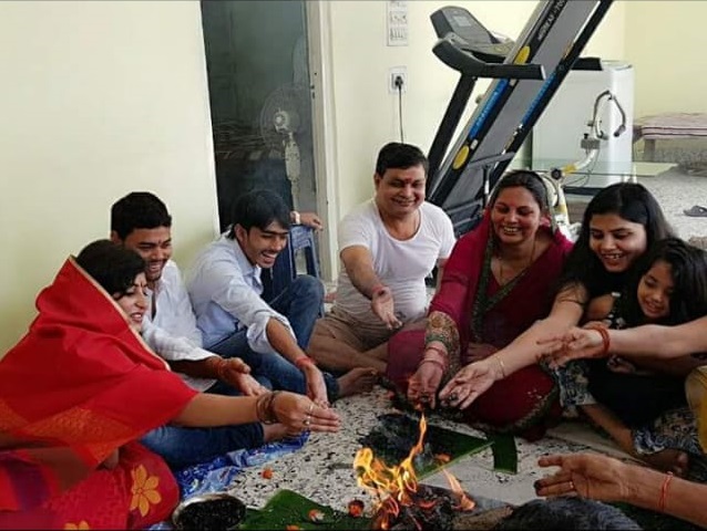 | पारिवारिक पूजा में हवन करता ब्रजेश ठाकुर |